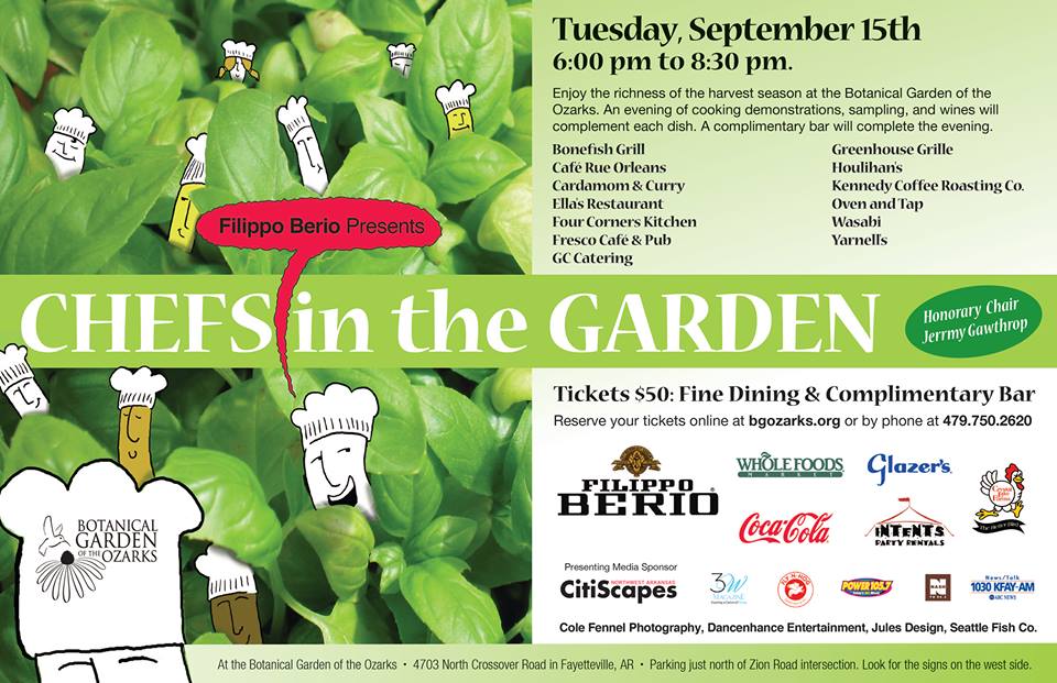 Stroll through the fall gardens while enjoying cooking demonstrations and tastings from the area’s finest chefs. A bar and small silent auction are included.