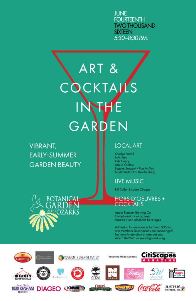 Enjoy evening blooms, frosty beverages and an art show. A signature cocktail is paired with a featured flower. Guests mix and mingle to live music and light tastings. The art show features local artists whose works are displayed for sale, with a commission supporting BGO. Art & Cocktails in the Garden raises awareness about the many activities and programs of the Garden as well as a cultural event for the community.