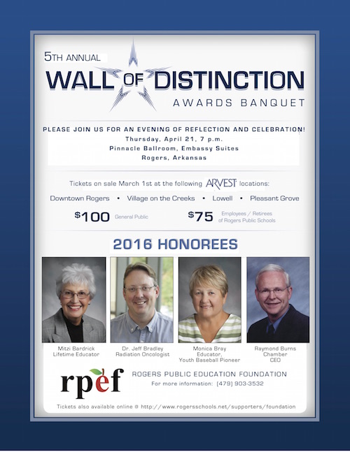 Four exceptional honorees have been selected by the Rogers Public Education Foundation for the Wall of Distinction.