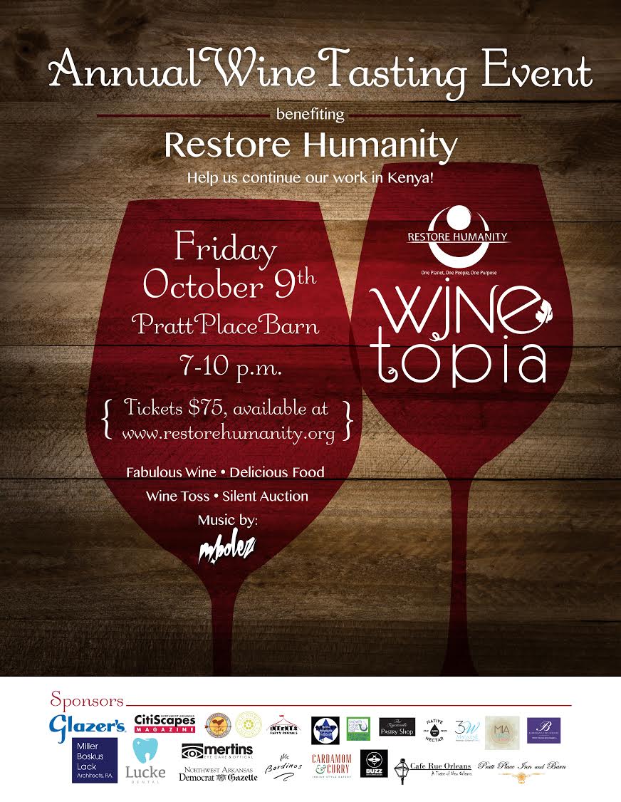 Winetopia is Restore Humanity’s annual wine tasting extravaganza. This event includes delicious cuisine, silent auction, wine toss and live musical entertainment.