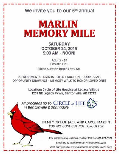 This event will include refreshments, a silent auction, door prizes, opportunity drawings, and a memory walk to honor loved ones. All proceeds benefit Circle of Life Hospice in Bentonville & Springdale. Circle of Life's mission is to provide compassionate end-of-life care for a person's body, mind, spirit and family when there is no longer a cure. The […]