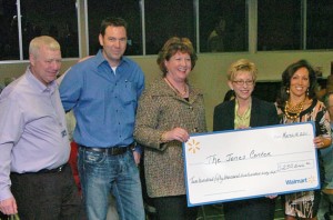 Rick McCullough, Executive Director of The Jones Center, and Jay Ellis, Corporate Chair of The Jones Center’s Development Council and Nestle USA accept a $250,266 check from Karen Parker, Program Manager for the Walmart/Sam’s Club Foundation.  Also accepting are Celia Swanson, Immediate Past Chair of the Center’s Development Council and a Senior Vice President at Walmart, and Tina Hodne, Immediate Past Chair of the Board of Directors of The Jones Center and a realtor at Coldwell Banker Harris McHaney & Faucette.  Walmart is the Presenting Sponsor of the primary youth programs at The Jones Center.  The check presentation took place on Friday, March 4th at The Jones Center in Springdale.